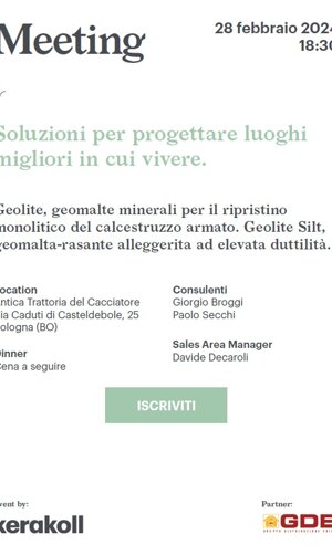 Meeting: Geolite, geomalte minerali per il ripristino monolitico del calcestruzzo armato. Geolite Silt, geomalta-rasante alleggerita ad elevata duttilità.